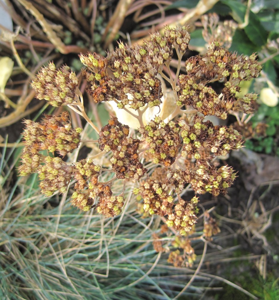 Meanwhile the garden is mellowing every day, fading to soft browns and beigey tones. Lovely seedheads, a few fungi here and there and evidence of a lot of bird activity now that the feeders are generously providing a daily feast.
