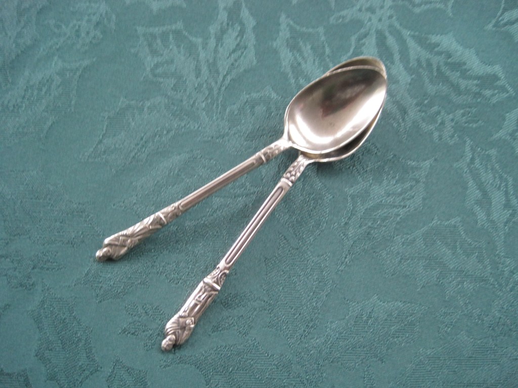 One of the things I spotted in a tray of old cutlery was a small teaspoon with a little figure on the handle. Later, I discovered these are known as “apostle spoons”. I bought two, simply because I liked them, along with some other old teaspoons.