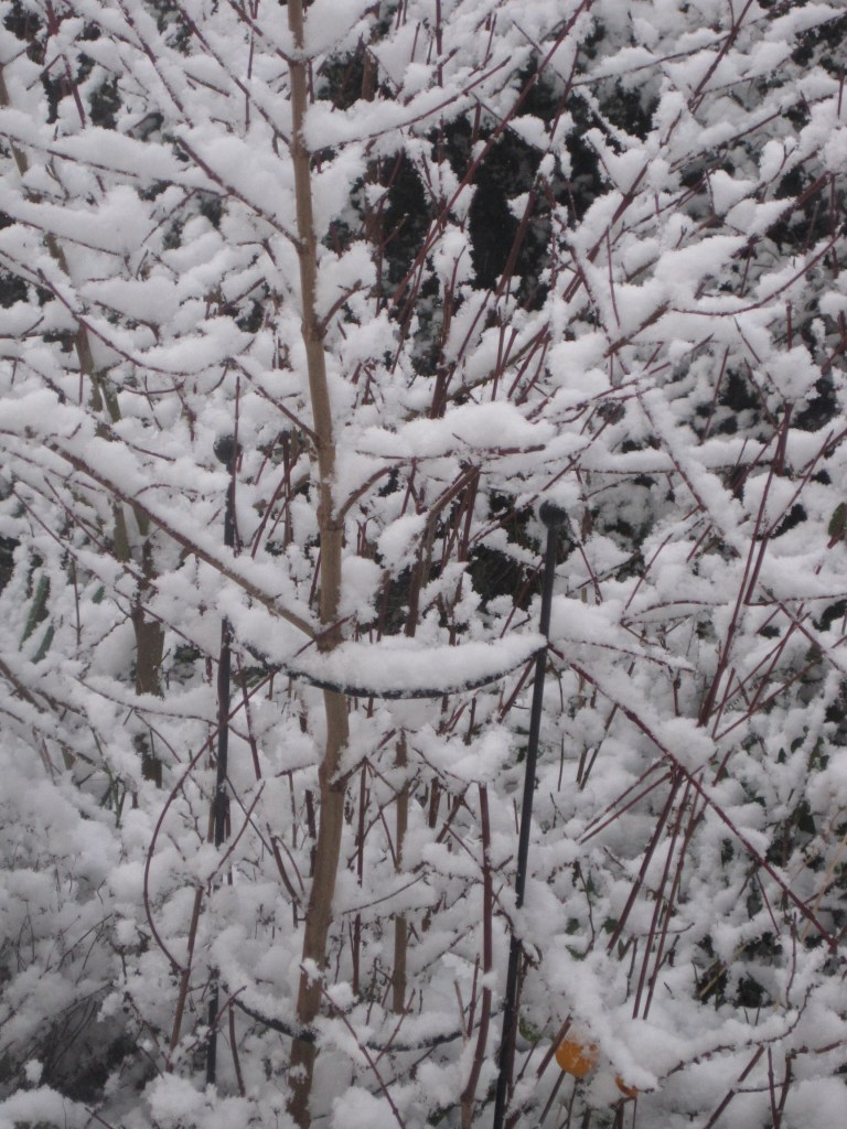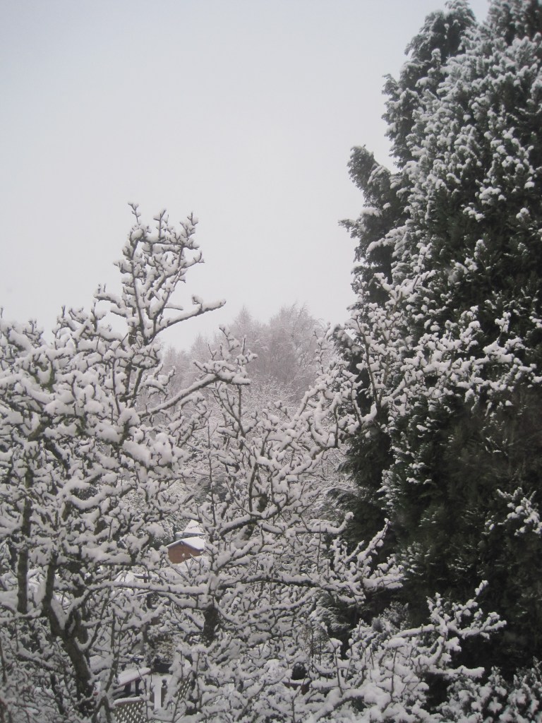The snow has been falling for the last few days. On Saturday it fell silently in huge lacey flakes covering everywhere in a silent blanket. I didn’t venture out into the cold, preferring to stay warm and dry but I took some photos through the windows.