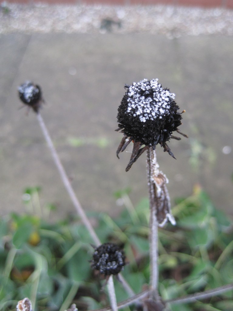 We’ve had snow, frost , fog and rain during the last week. Slippery paths in the garden, frozen puddles and frost-rimmed plants. Had a walk around the other day when a frosty morning tempted me out with my camera.