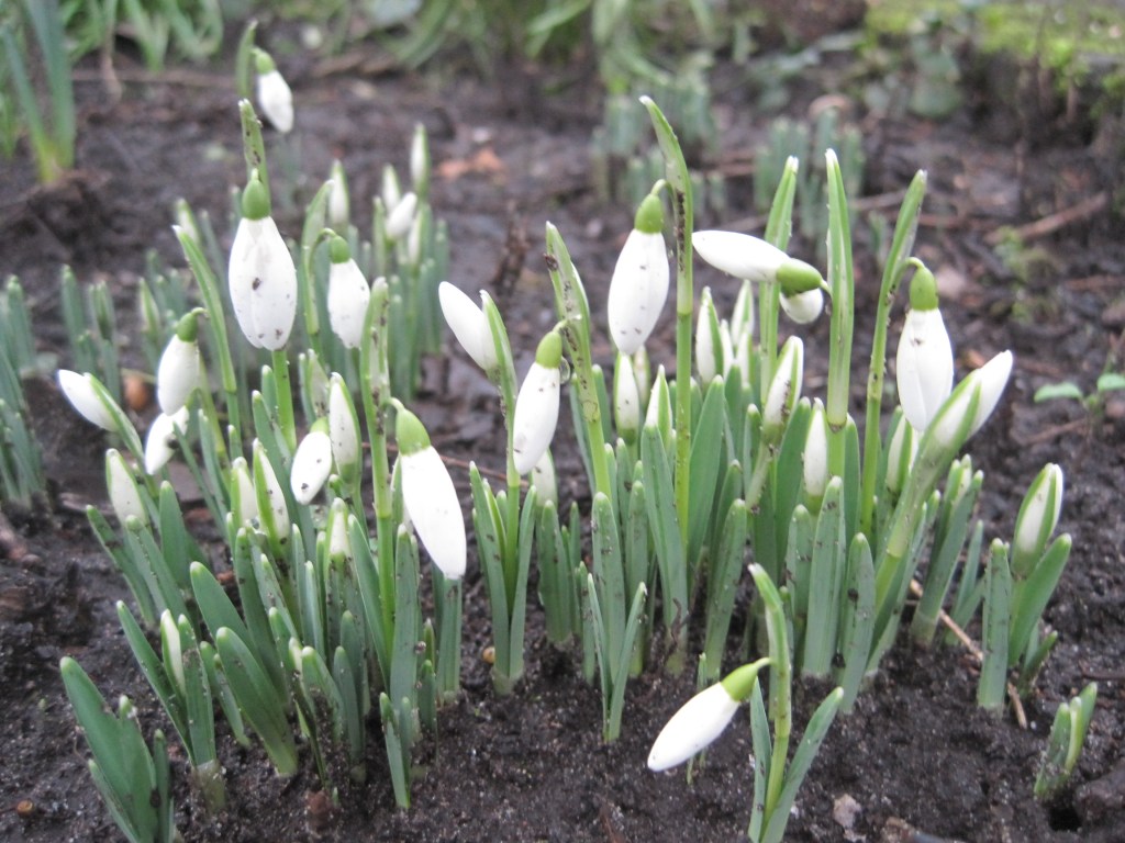 Meanwhile Winter is up to it’s old tricks. We have had snow on and off for a week. Not my favourite thing. My poor plants are scrunched up trying to keep warm and their heads down from the wintery blasts. They surprise me though by their resilience. By noon on a good day they’ve perked up again, standing proudly and showing their flowers. The tiny Snowdrops are splashed with mud but still manage to look lovely.