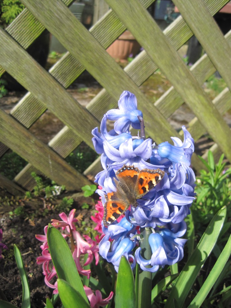 The hyacinths’ scent is amazing. It wafts around the garden and sitting close to them is very pleasant, especially when we can watch the butterflies enjoying them too.