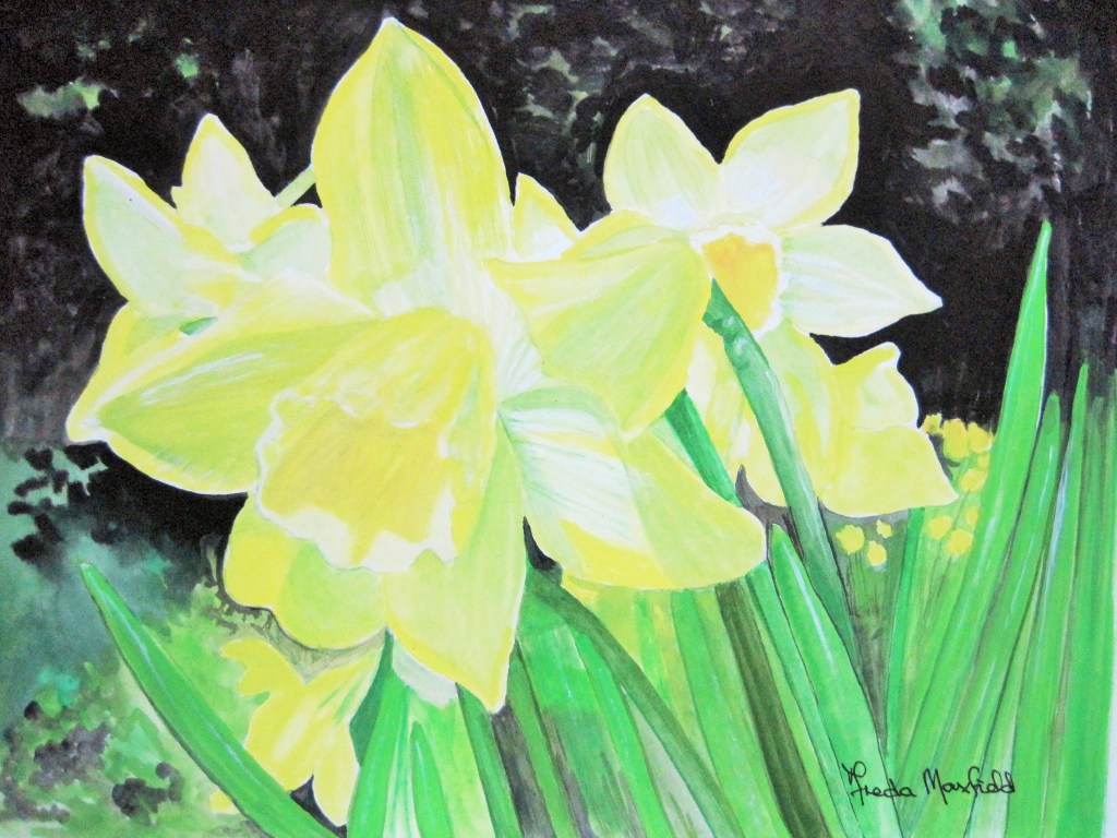 So many lovely things to see. I often paint flowers because I love the colours and the way the light plays on them. Here’s a painting of daffodils I did a few years ago. Painted with gouache.