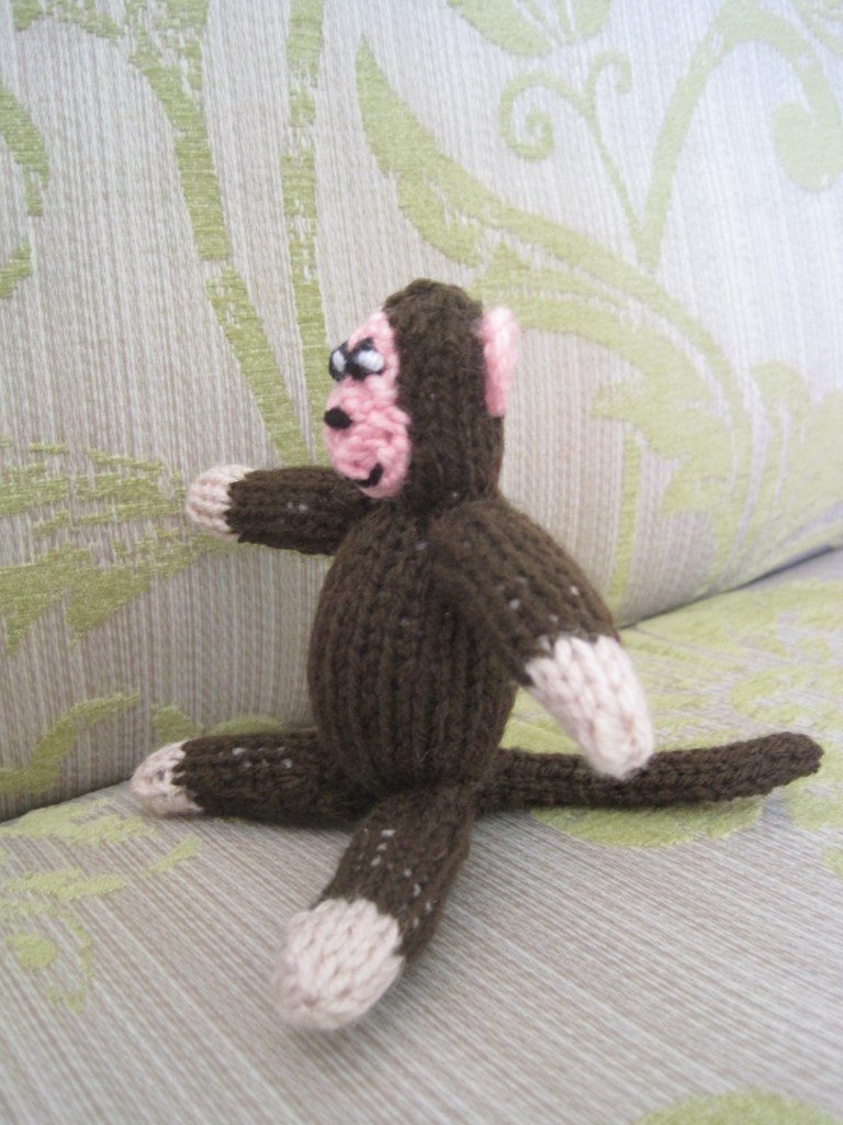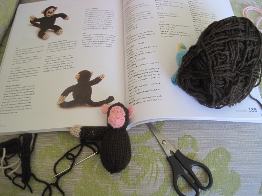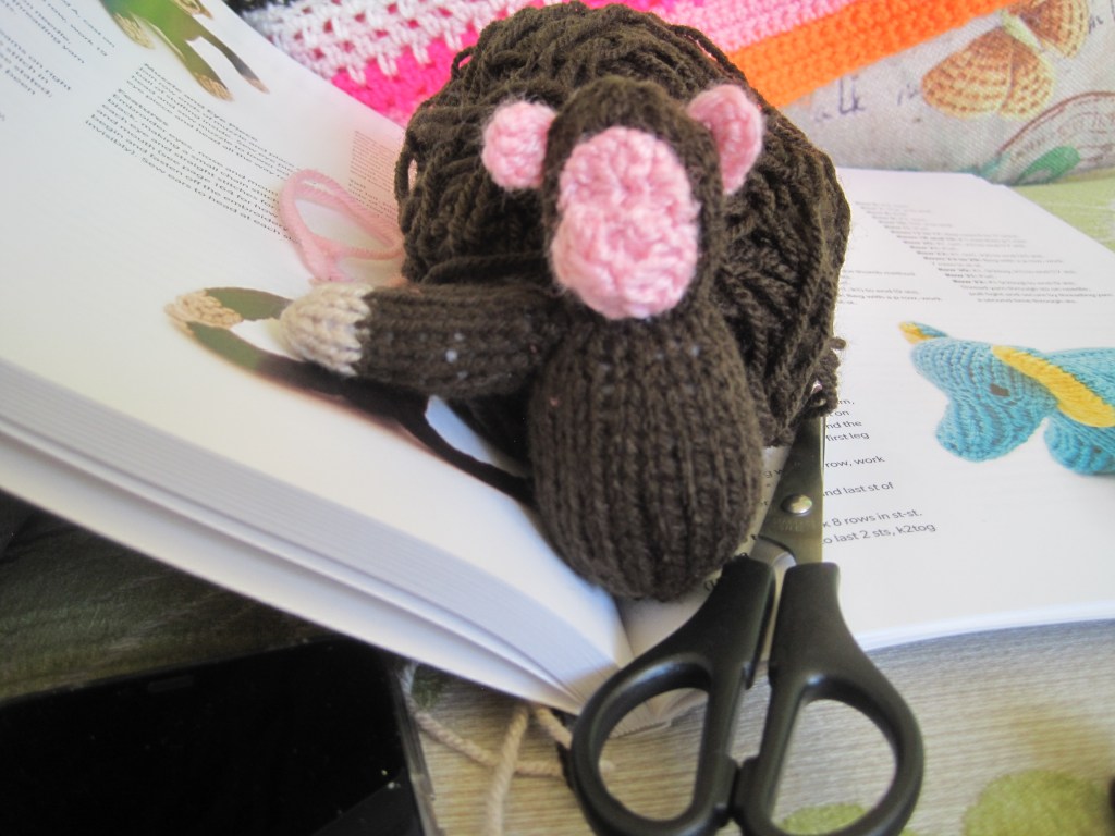 Although I don’t have any little ones of my own now to knit for I thought it would be fun to try some of the patterns for small toys. They use up odd scraps of yarn and only take a couple of hours to make. Putting them together is great fun, seeing them come to life as I sew them up and stuff them. The toys are only tiny, hand-sized and so cute.