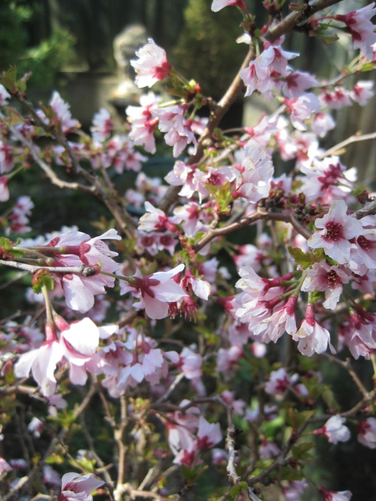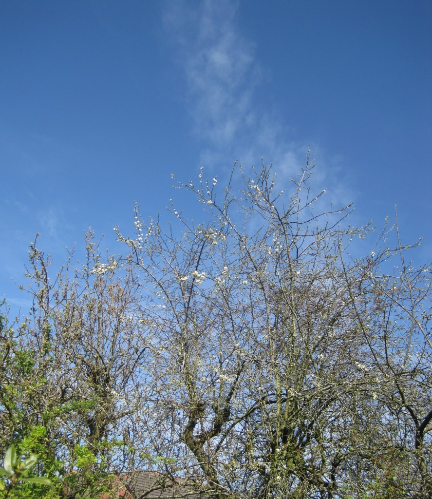 The fruit trees have swelling buds. The plums are always first and are beginning to open their white flowers.