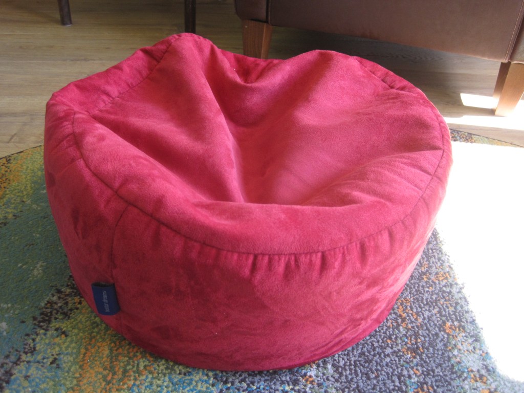 The other day I did a little refurbishing job I’ve meant to do for a while. We have a footrest which was filled with awful polystyrene beads. Terrible stuff which is not recyclable. I also hate them because they make an irritating noise when squashed. So I finally bought some soft stuffing, emptied out the beads and got on with the job. Here you can see the result from saggy item to springy, comfy puffiness.