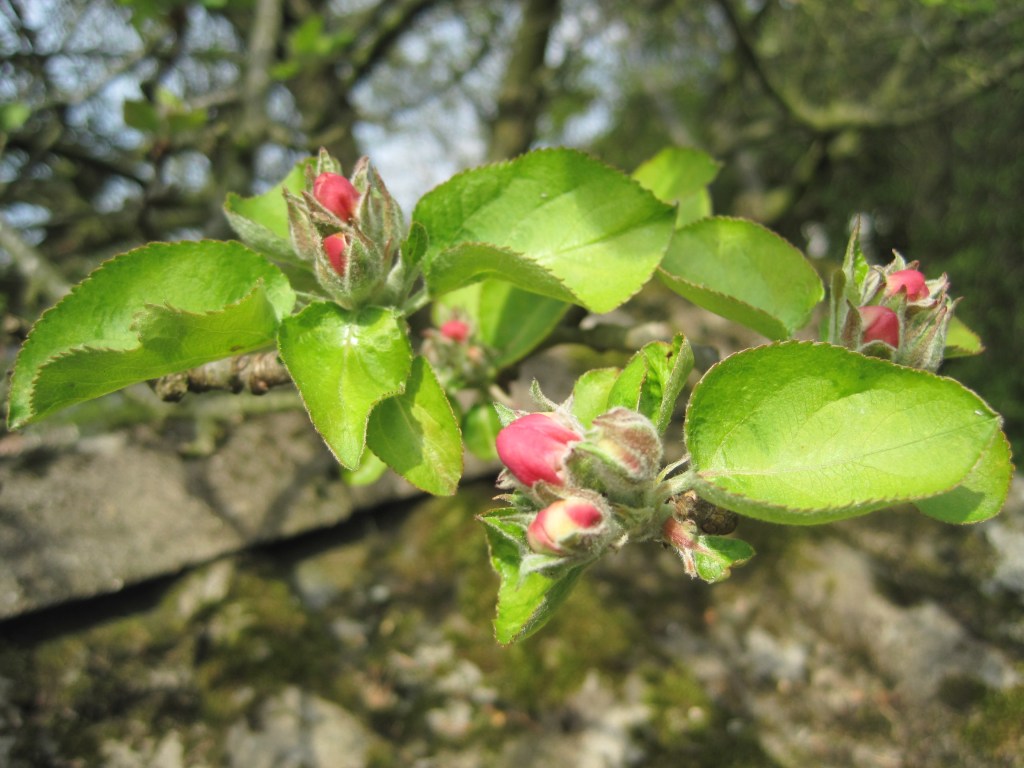 The apples are only in bud yet but they are so pretty. Deep pink before they open and the most beautiful delicate pink in flower. Here’s how they look right now.