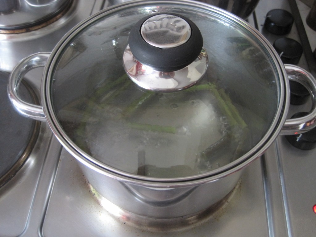 I simmered the stems in the syrup for 15 minutes, removed it from the heat and set it aside until the next day.