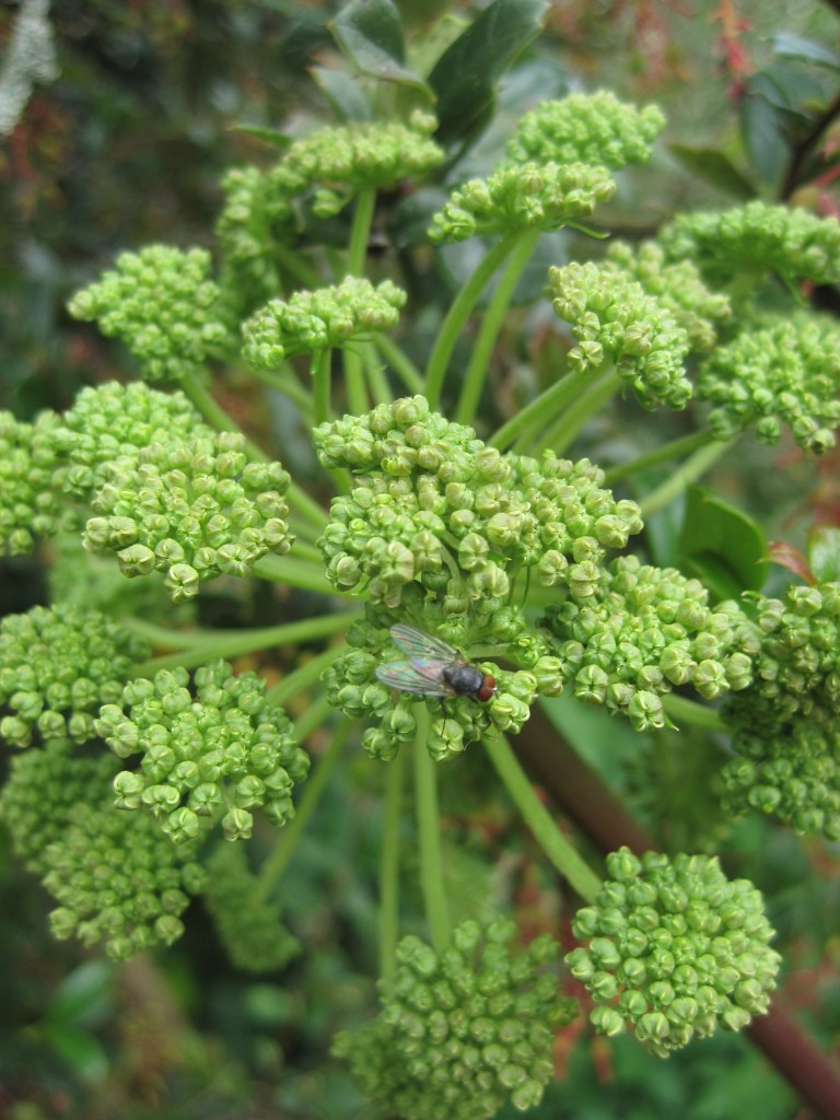 The flower heads or umbels, as they’re called, will open into lovely white flowers which bees will love. There were bees and other pollinators buzzing about today in the garden despite the cold, wet weather.