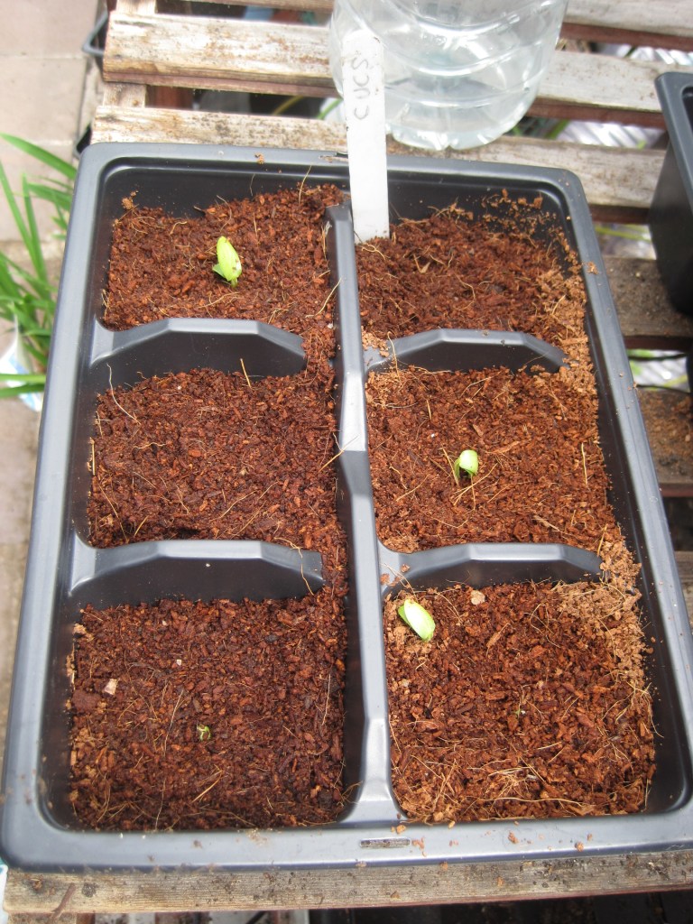 Because it’s been so cold I’ve only just sown runner beans, French beans, cucumbers, courgettes and squashes. They’re all very tender and don’t like the cold. Much like myself! They are beginning to peep through the coir and should grow nicely now the nights have warmed. They’re snug enough in the greenhouse until planting out time.