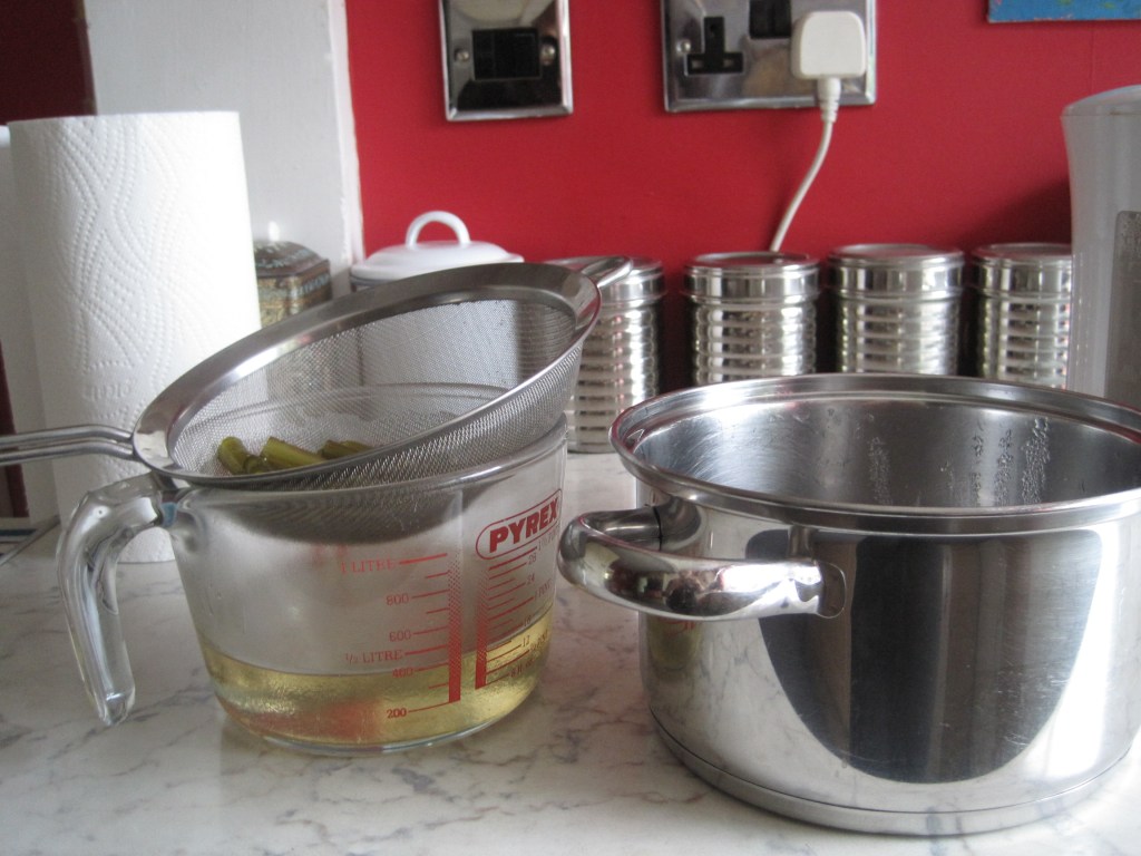 On the third day I added 100g sugar again to the warmed syrup, brought it to the boil then simmered for another 15 minutes. It’s important to bring it to the boil steadily or the syrup could burn and caramelise.