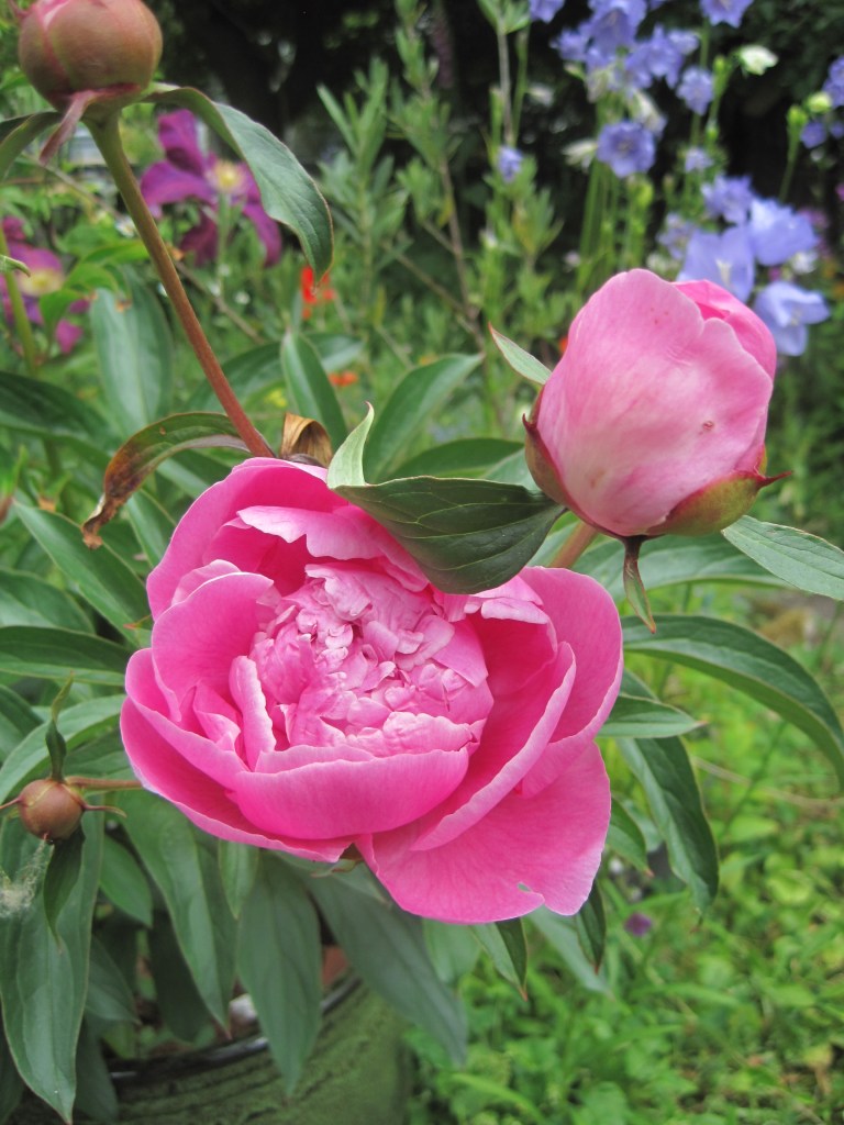 The peonies are at their best now. I have a pale pink one called “Sarah Bernhardt” which is a very romantic flower. I love it. I also have one called “Alexander Fleming”. This one is a rich vibrant shade of pink. Both very beautiful. I just wish they lasted longer before shedding their silken petals.