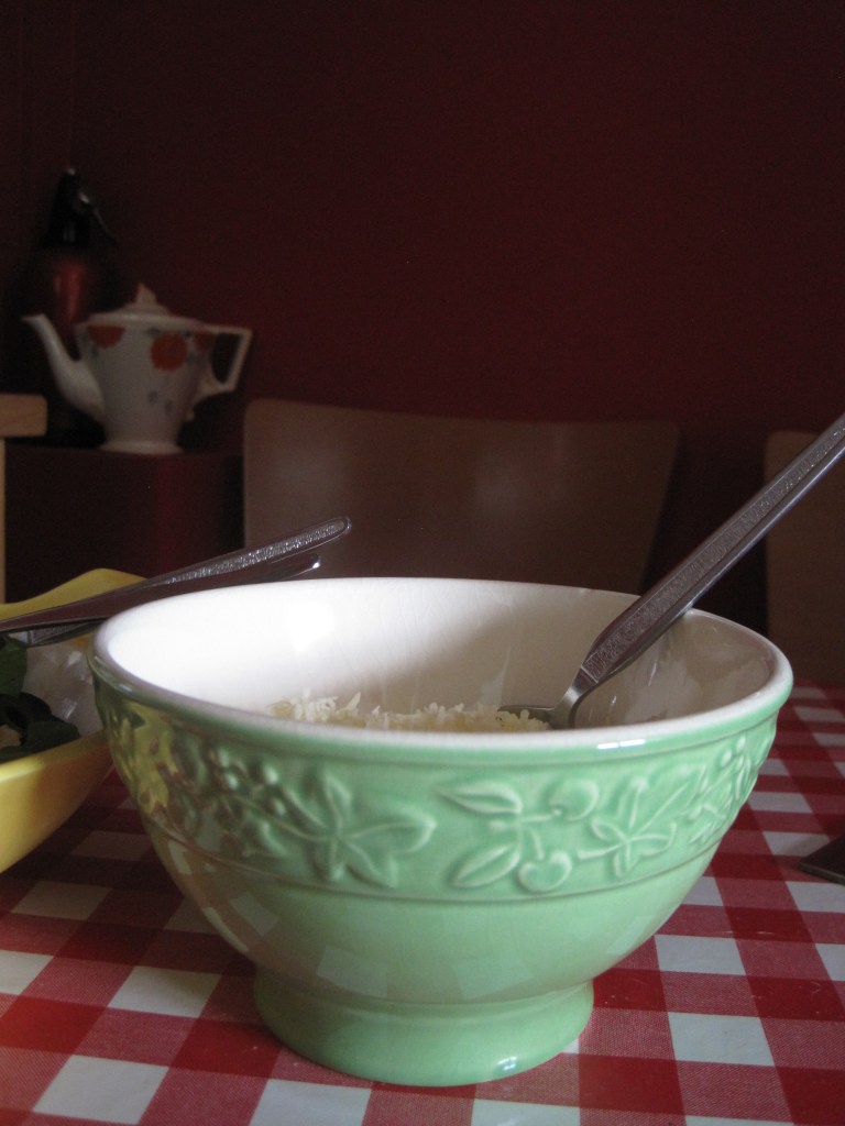 The recipe is on an earlier post with the title “Basil Salad and Waterlilies”. Very easy and yet always seems special.