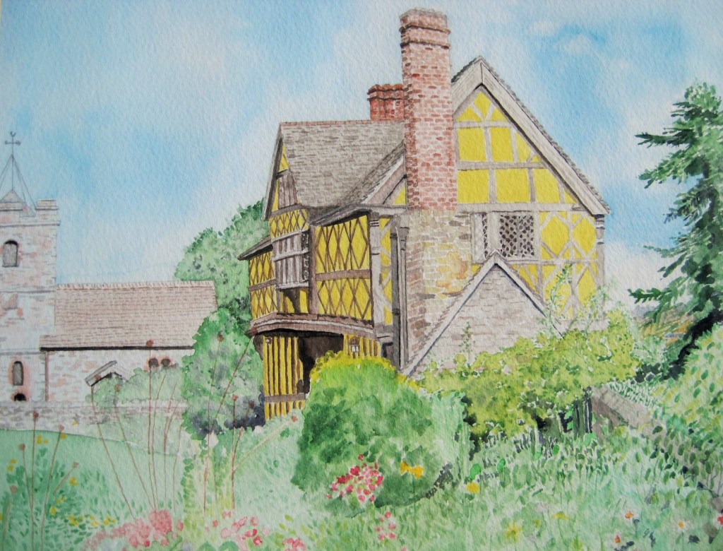 As you can see I’ve kept myself occupied but I haven’t been painting for a few weeks. Unusual for me but I expect when it goes dark early and nights seem long I shall pick up my brushes again. Meanwhile here’s another old painting I did of Stokesay Castle in Shropshire. Painted with gouache from a photograph I took on a visit. A lovely building with a pretty garden.