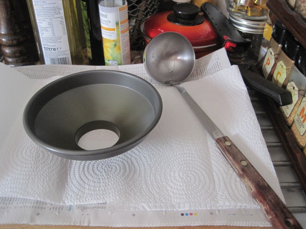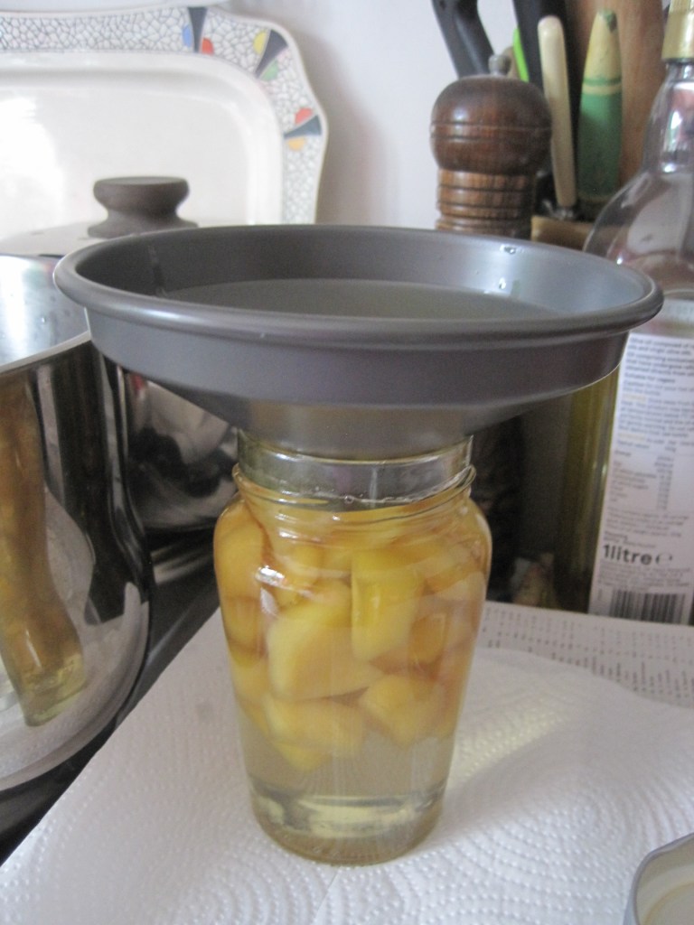 A funnel is always a good bit of kit when ladling into jars. It stops the sticky contents from touching the rim or outside of the jars. Saves a lot of wiping after the jars cool. I definitely don’t like sticky jars to handle.