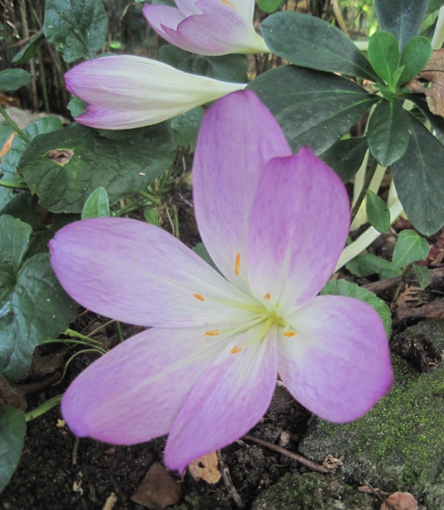 Signs of early autumn as the colchicums pop up beneath the acer. Delicate beauty despite their annoying habit of falling over.