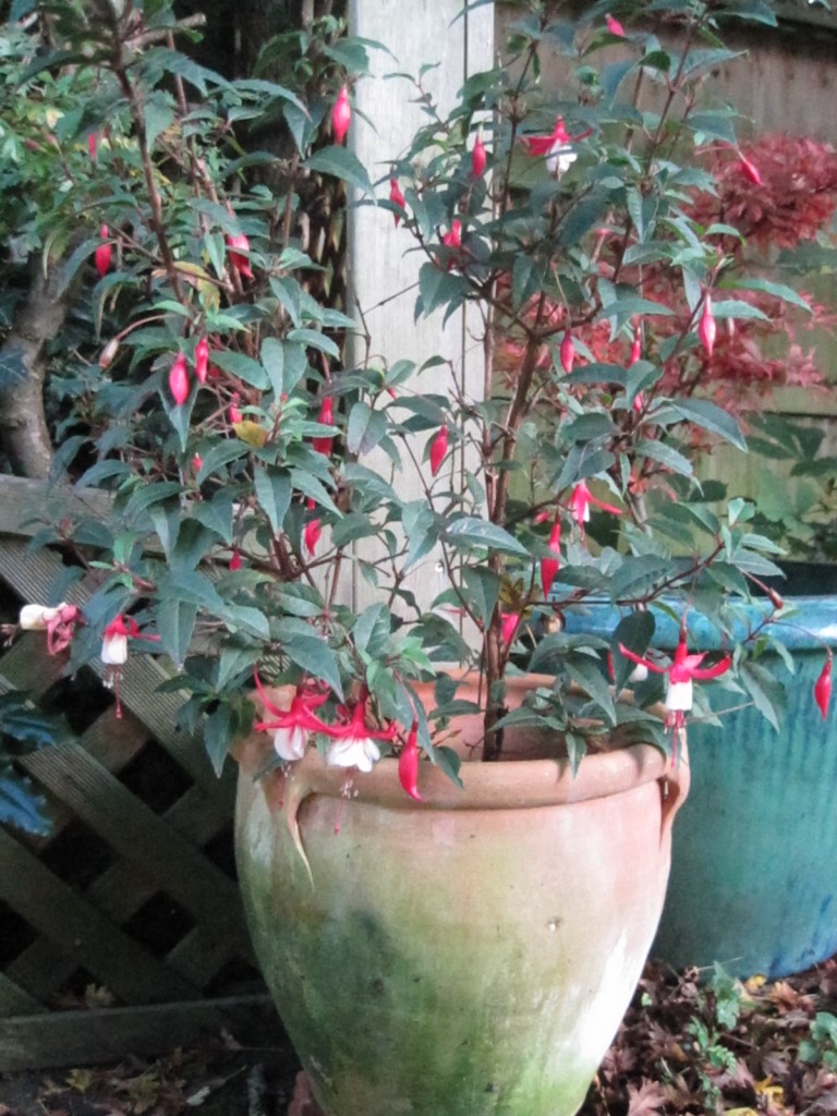 I have two small fuschia plants growing in pots. Useful plants at this time of year when other flowers are fading.