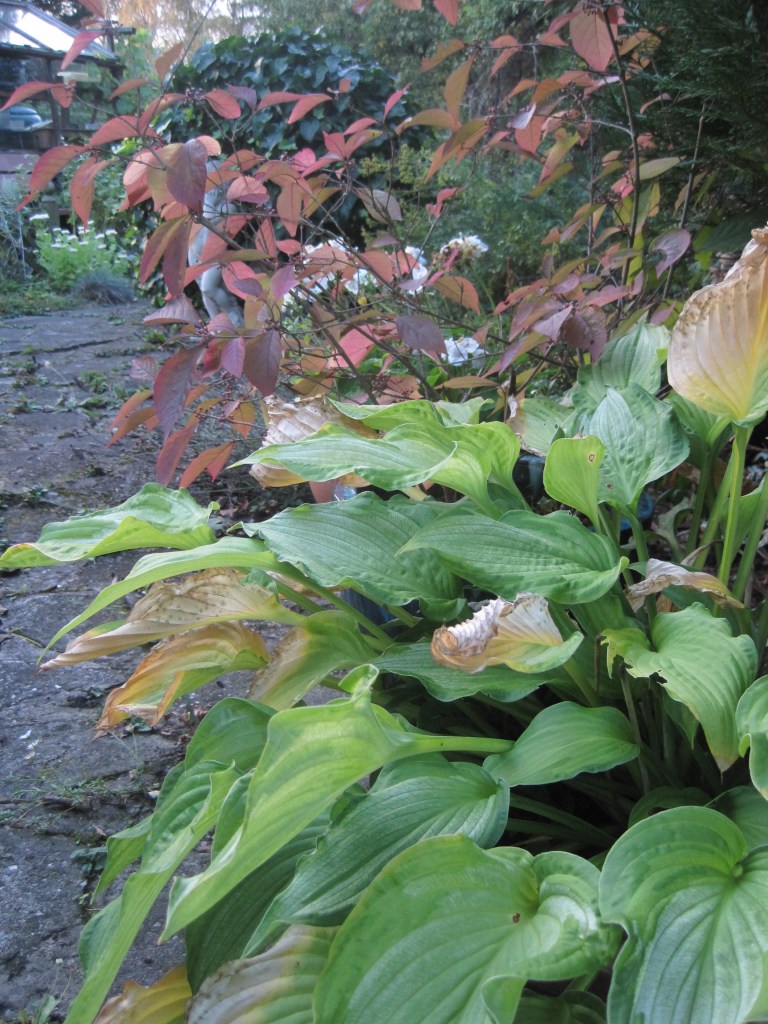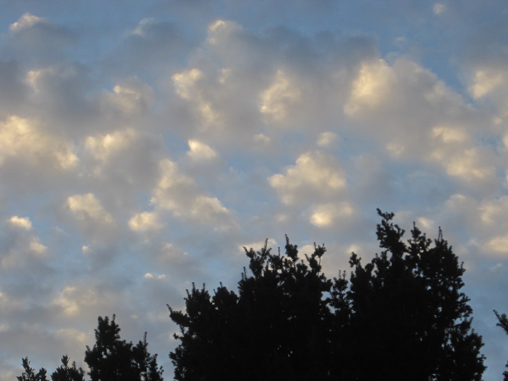 The garden is mellowing and the skies are beautiful. Blue sky and billowing white clouds by day and golden clouds at twilight.