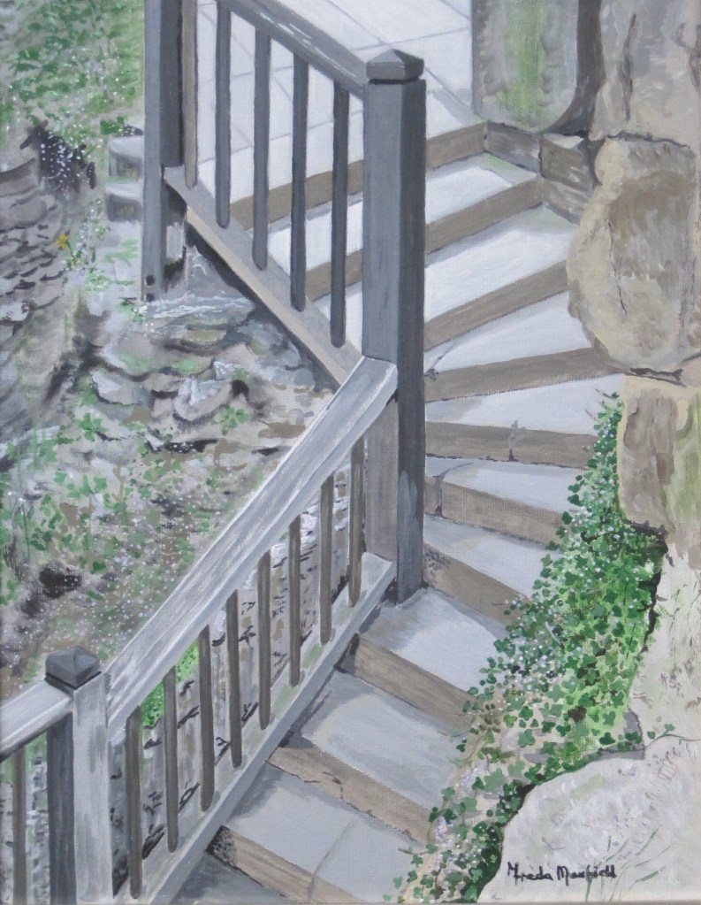 There’s no point in trying to show a photo of the drawing as it wouldn’t reproduce well. When the paint is flowing I’ll show what I’m up to. Meanwhile here’s an old one. Like the beginning of a new year the steps are leading to adventures yet to be discovered.