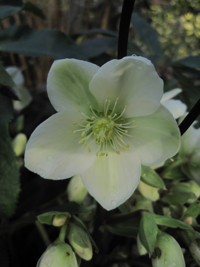 Just looking around the garden proves that the old year may have gone but the new one is already showing signs of life. Snowdrops are peeping through the soil, hellebores are budding and flowering, winter clematis “Freckles” is opening its pretty bell flowers and another tiny rose is blooming. Leucojum has shot up it’s fresh green leaves already but it won’t flower for a few weeks yet when it will have snowdrop-like flowers.
