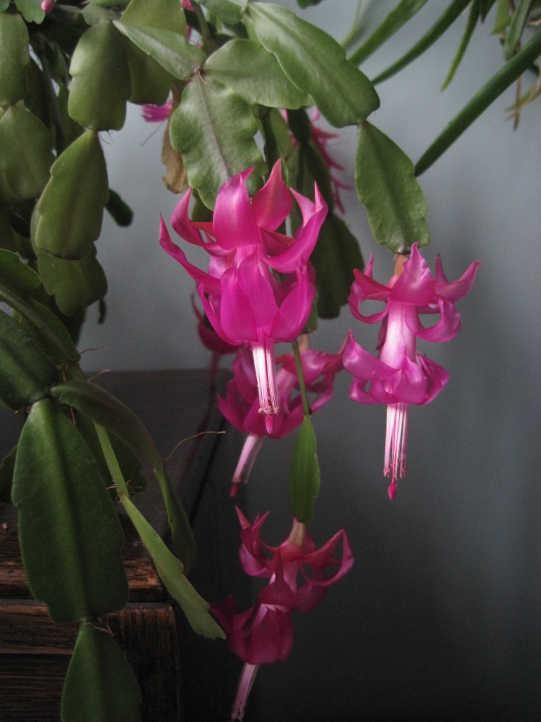 Indoors, my Christmas cactus is flowering again. I don’t think this is really a cactus despite the common name for it. It’s probably a succulent. It’s ancient, a bit like myself, but it keeps going. I’ve had this plant for at least 30 years and although it’s looking tired and battered it still produces lovely flowers in late December and January. It has a broken stem which , despite all odds, healed and clings to life. A lesson to us all, I suppose.