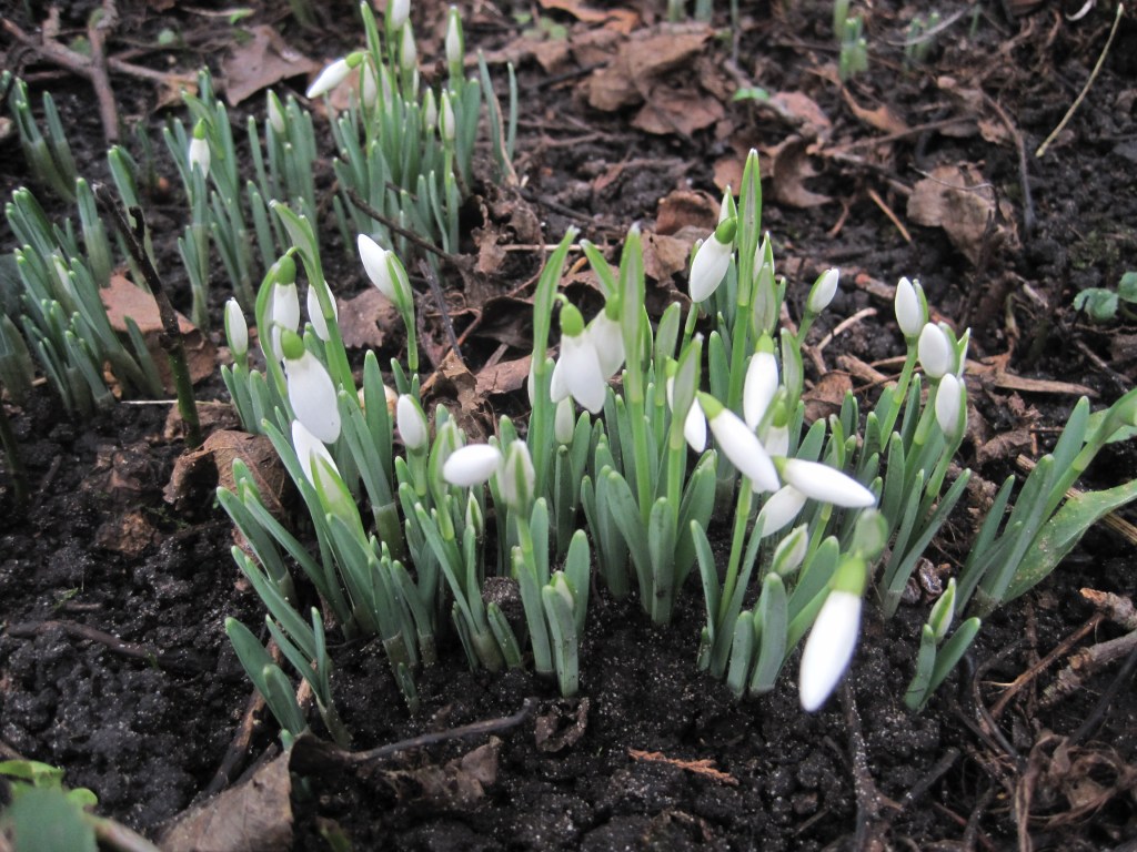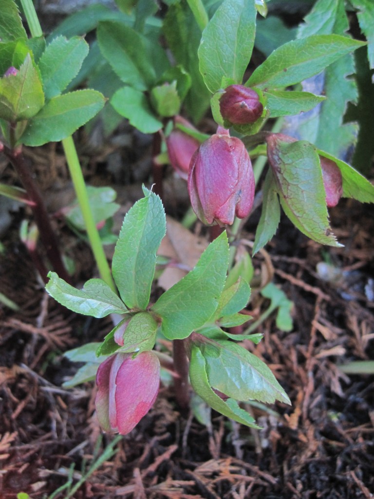 Meanwhile under the apple tree lots of Snowdrops are pushing up in different stages of growth. A few have flowers but there are many more to come in a couple of weeks. The Hellebore buds are increasing and some are even opening their petals.