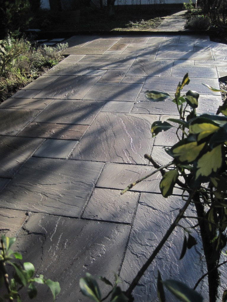 When we moved here 20 years ago most of the garden was covered in concrete, much of it old, broken crazy paving. Over the years we removed a lot of it to produce growing areas. Some of the ground though was not reclaimable. There were old brick foundations underneath or tree roots. We made the best of what we had and enjoyed the fact that there were mature trees and space to move around but trying to make the hard surface look presentable was always a problem. We’re no longer “Spring chickens”! So we decided to call for help.