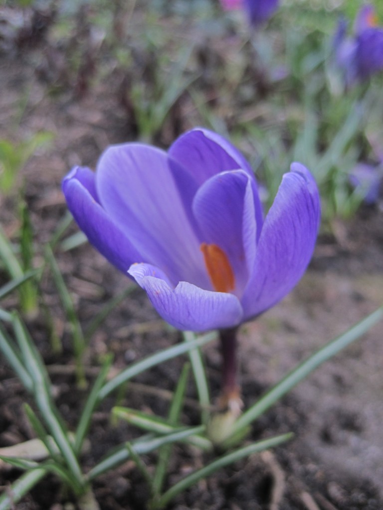 When the sun comes out the lovely Crocuses open their petals to reveal golden stamens.