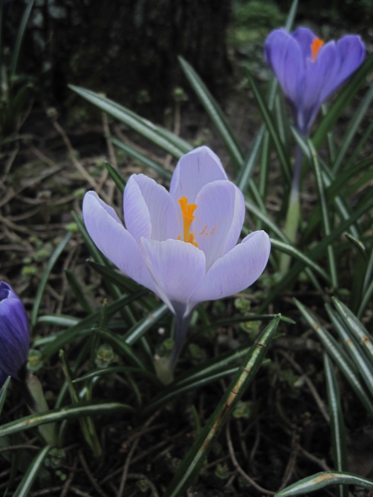More Daffodils are appearing with their glowing yellow or orange trumpets. Perky little “Tete-a-tetes and “Jetfire” are the earliest to appear in my garden. The Crocuses keep surprising me although the best of the show is almost over. The pink Hyacinths are almost out in front of the house and multi-coloured ones are peeping up at the back.