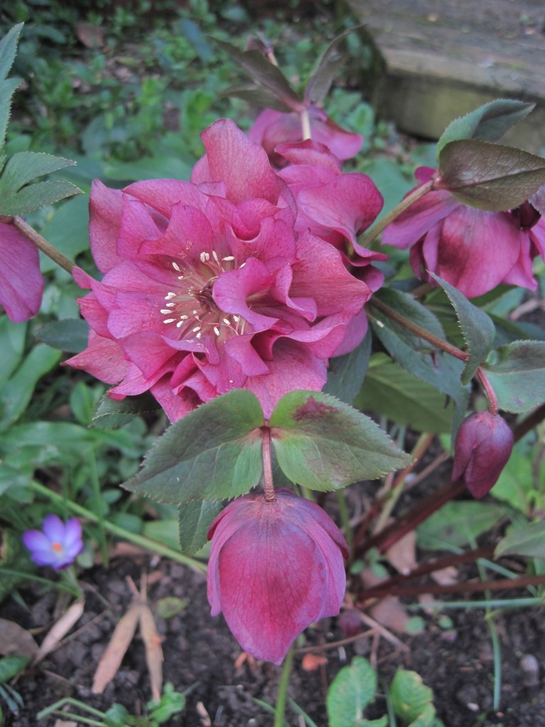 I discovered I have a yellow Hellebore. It started flowering this year. A small plant with only two flowers but very nice. The pink ones are still a wonderful sight.