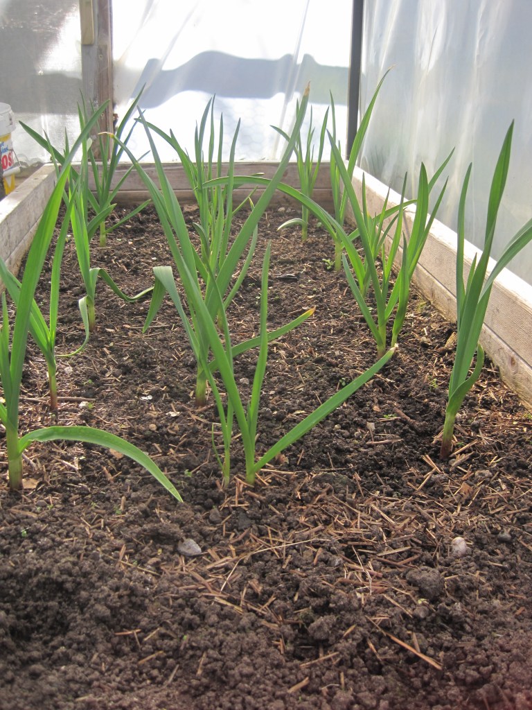 The garlic is coming on. Nice green leaves are standing up and looking promising. I hope the bulbs are fattening beneath the soil to produce delicious cloves in May. I only have a few stored ones left to use in the kitchen so the fresh crop will be eagerly harvested when the time comes.