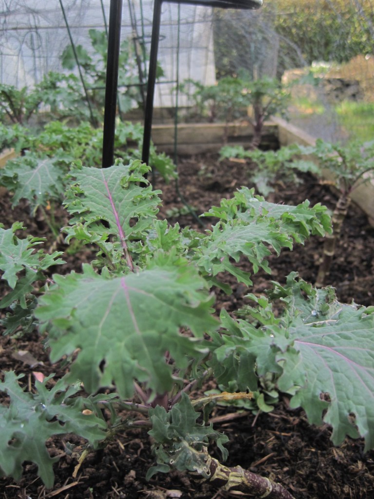 This is my favourite kind of kale called “Red Winter”. It’s more tender and sweeter than the very curly types and cooks very quickly. Goes brilliantly with my cheesey potato bake. ( The recipe will be in my cookbook, which I hope to publish soon.)