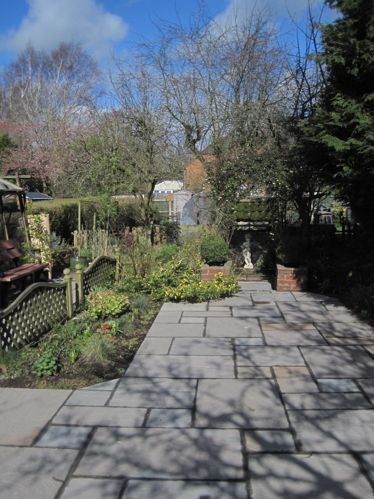 One of the unexpected pleasures of the replacement paving is the shadows which fall across it from the trees. Lacy streaks cast by branches give an added appeal to the eye.