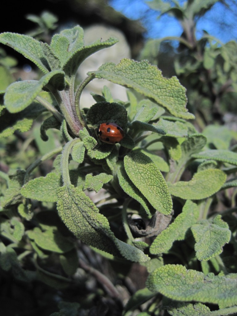 The Ladybirds seem to enjoy basking in the warmth of the sun on the Sage leaves. I find lots of them on these shrubby plants.