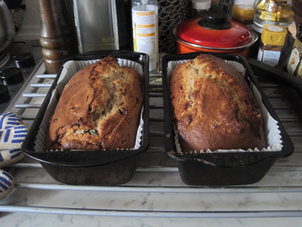 I had four small, very ripe, bananas to use up, so I baked my banana and cranberry loaves. Really nice, sliced with a spread of butter.A firm favourite of ours.