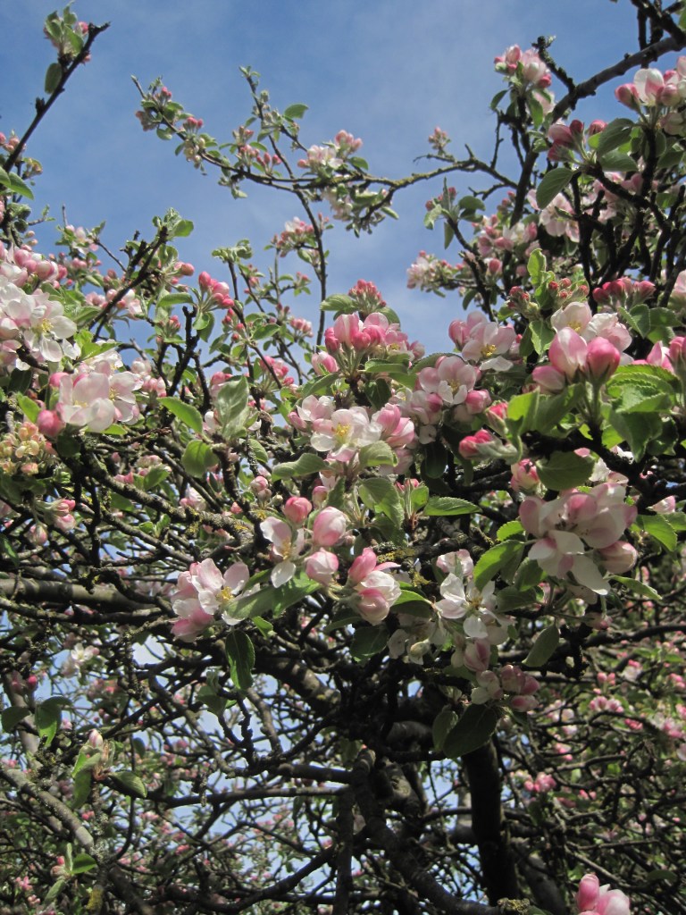 The apple blossom is wonderful. Pale pink and fragrant with the prettiest clusters of petals.