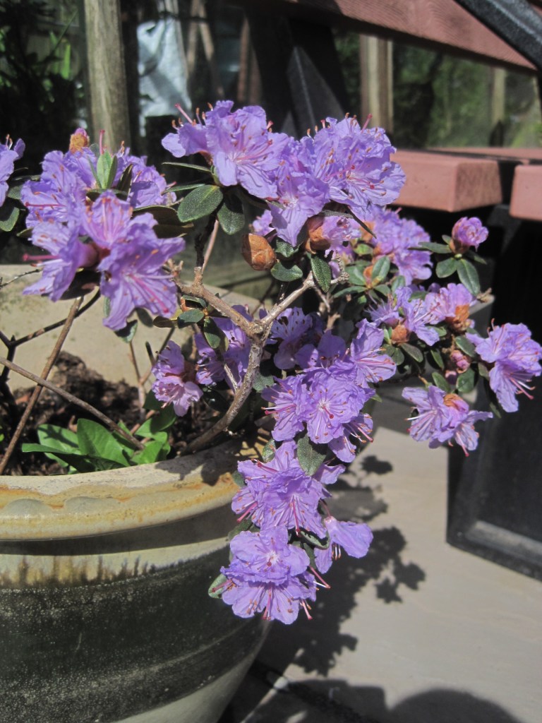 We have a tiny purple Rhododendron and a bigger, deep pink, one. They’re both in pots. They struggle a bit but are lovely at this time of year. If only the flowers would last a bit longer! Of course, that brief pleasure makes it all the more special each time it happens.
