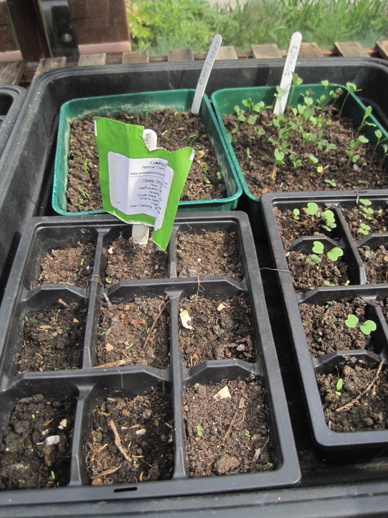I’m nursing little seedlings now for this year’s vegetables. It’s important to keep them sheltered and moist but not over-watered or they will rot. That’s known as “damping off”.