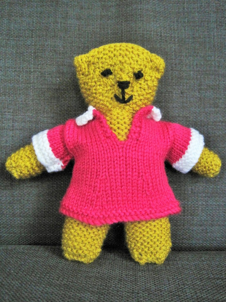 My knitting yarn and needles have been put away for a while. I completed the second teddy and knitted it a little dress. I’m hoping some little children will be delighted when I pass them on.