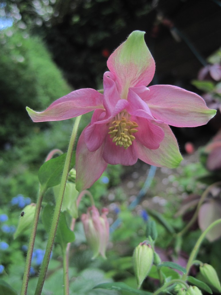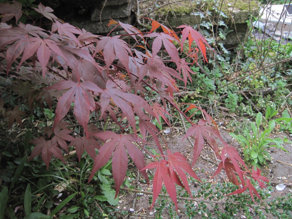 We have four Acers; the Japanese types which don’t grow very big. I really love them with their graceful dipping branches and elegant shapes. In Spring and Autumn they develop glorious colours and right now they have fresh, delicate leaves.