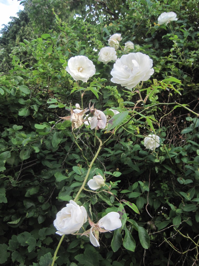 Fruit is growing well. Apples and pears will not be ready for a few months but are looking decorative. The redcurrants are my gift to the blackbirds but the strawberries are precious treats for us. I do leave a few outside the nets and there are tiny wild strawberries for passing creatures.