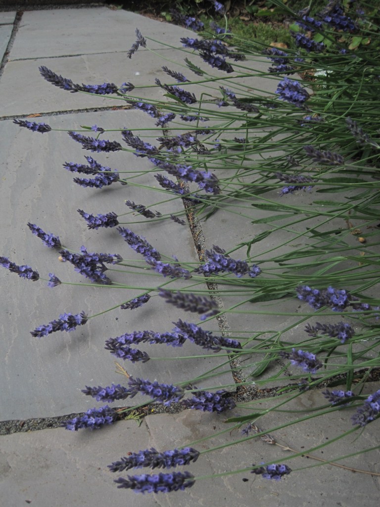 The lavender always attracts pollinating insects and I like the way some of the plants splay onto the paving with their fragrant flowers.