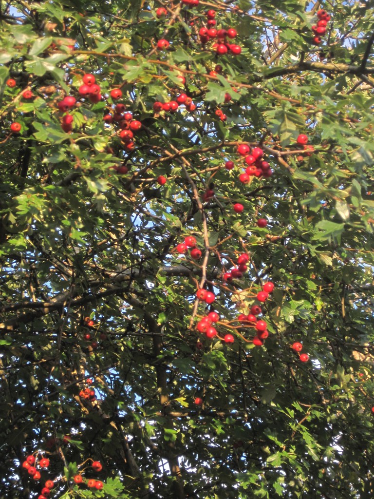 Some of the apples and pears have been gathered in. Some are high in the trees and will need a bit of effort to reach them. Plums are almost ready but need a while longer to plump up their sweet juiciness. A few have fallen but they’re not ready yet. Blackberries are glistening in a hedge and scarlet berries are everywhere.