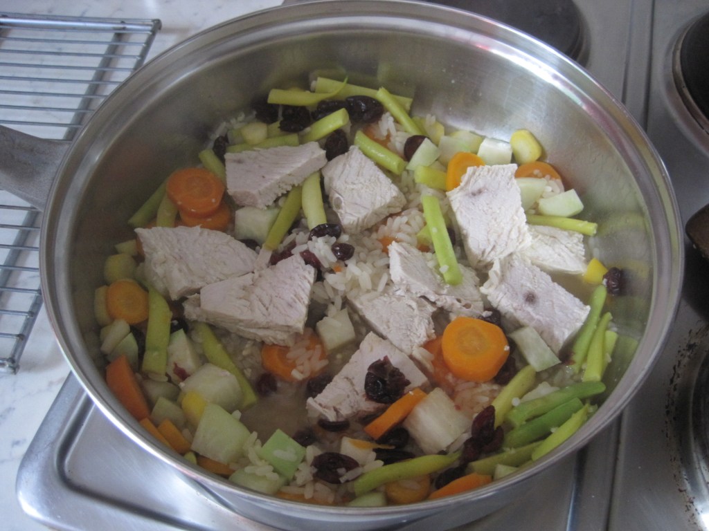 Essential for my one-pan meals is a good stock cube. I use an organic vegetable one in a small amount of water as a savoury base in which to cook potatoes or rice with vegetables and fish. I use a chicken stock cube when I cook chicken or turkey.