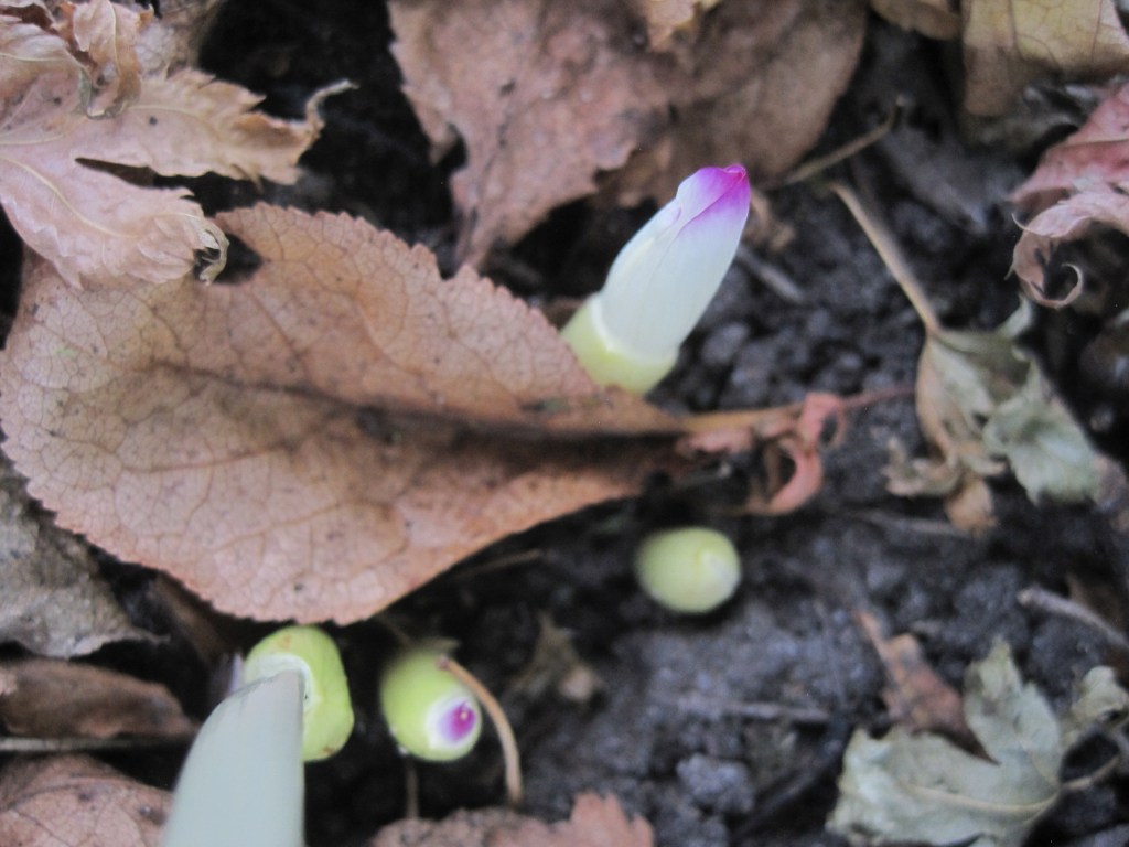 Still some pleasing green leaves, here and there, especially the silver-leaved brunnera and the patterns on the cyclamen hederifolium are a pleasure to see. Hederifolium means “ivy-leaved”. This is because the shape resembles those of ivy. The patterns on them are really lovely.