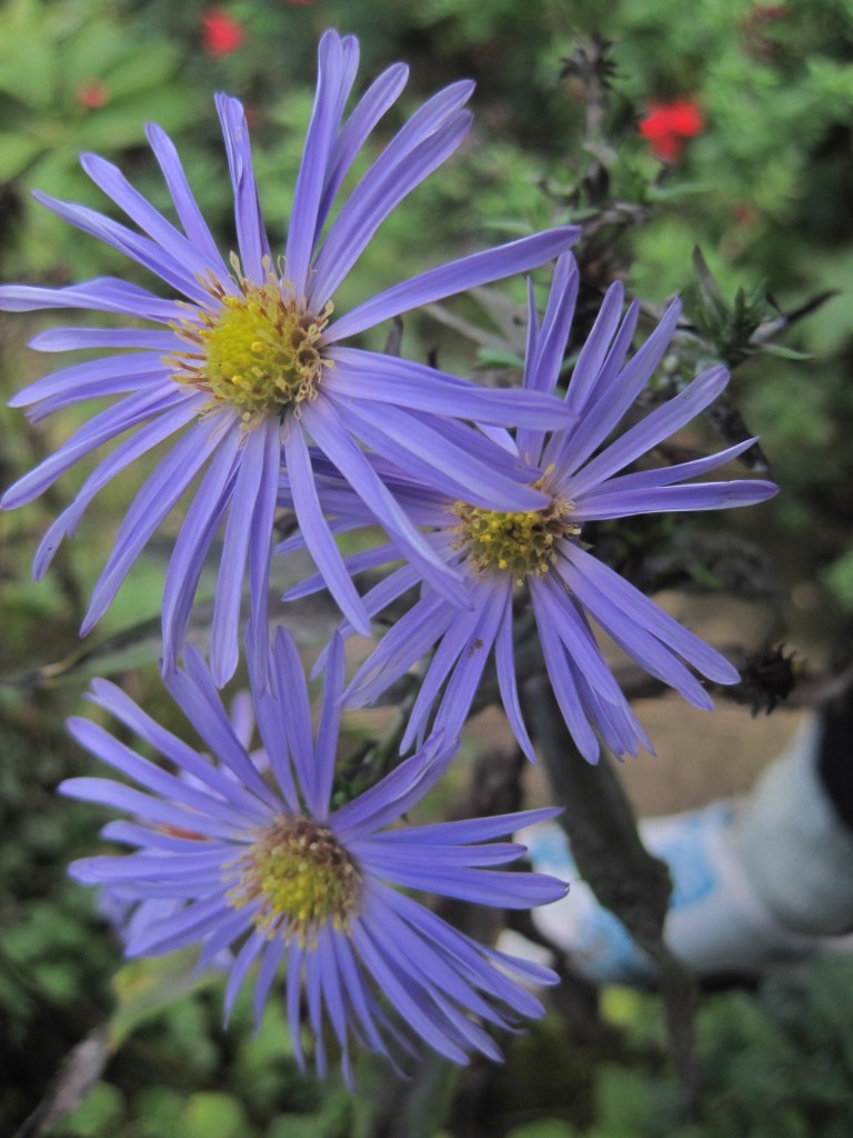 Asters, known as michaelmas daisies, are a beautiful feature of the Autumn garden. They are one of my favourite plants with their lovely shades of mauve. Sadly, this year, they suffered in the drought and their leaves are not at their best. The flowers are still a pleasing sight though. I brought some in for an arrangement in a pretty pottery basket given to me by my lovely daughter.