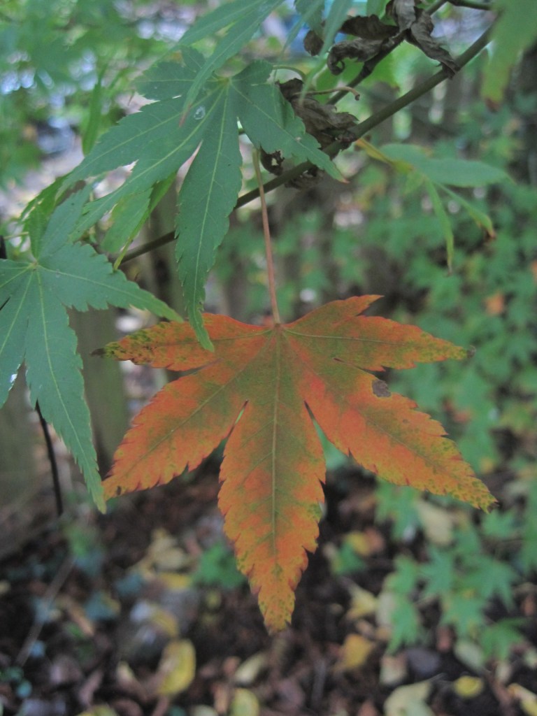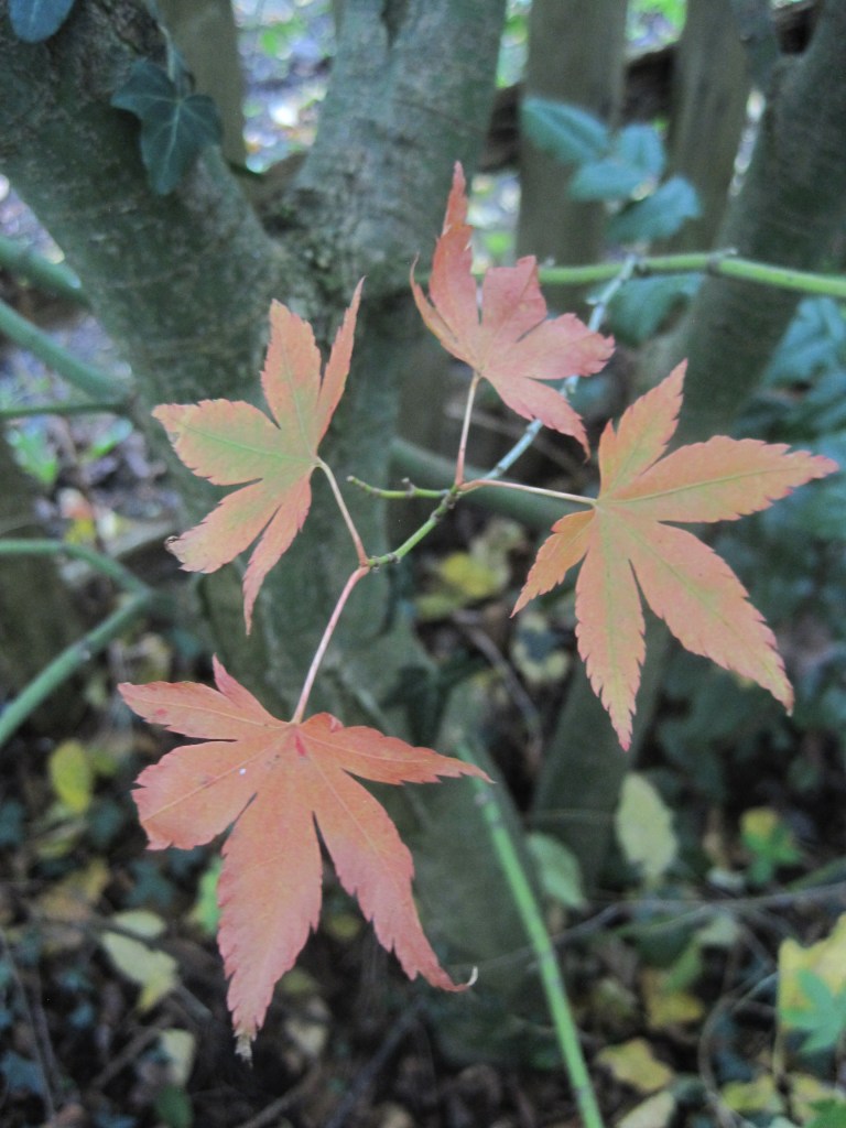 The acers are changing colour in a lovely way but usually hang on to the leaves until next month, when they shed them suddenly. The fruit trees are losing theirs much more rapidly and covering the ground beneath.