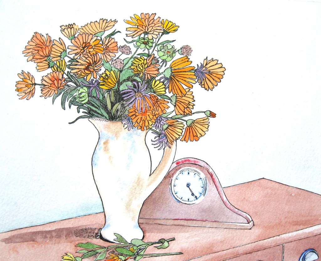 Haven’t done much painting recently but the urge is building. Here’s a very old one I drew and outlined with pen before filling in the colour with gouache paint.