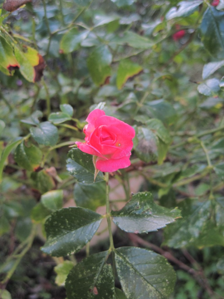 A few little potted roses are pretty and brightening the garden with their delicate beauty.