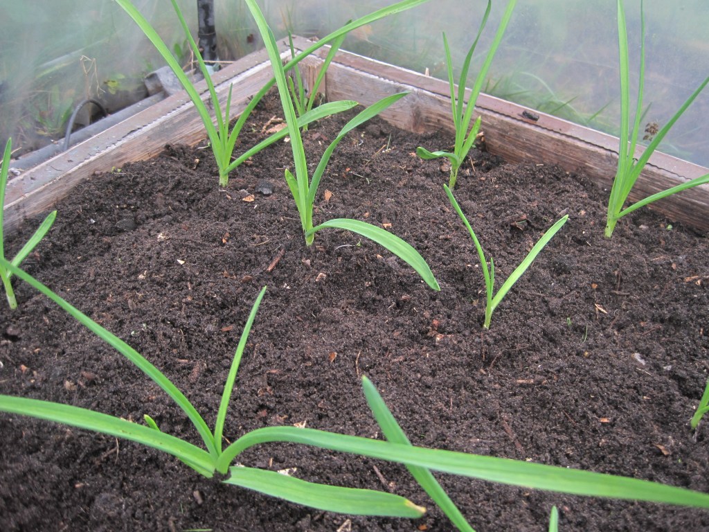 The garlic I planted last month has fresh green leaves. I’m hoping for a nice crop of juicy bulbs in May. Still using this year’s crop of sweet, flavoursome cloves.